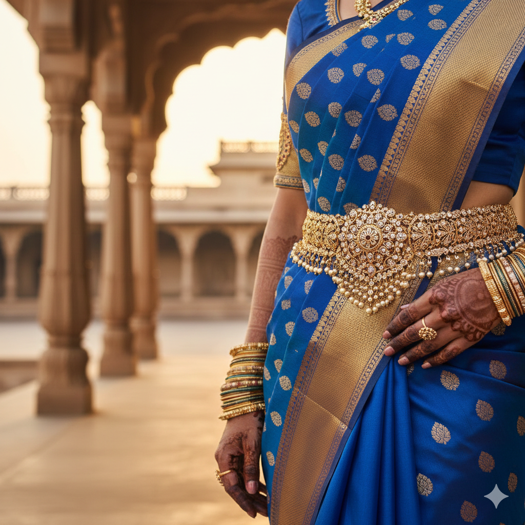 A kamar belt is an essential traditional accessory that cinches the waist with elegance and grace. Crafted with meticulous attention to detail, this ornamental belt features intricate embroidery or metalwork that complements bridal and festive ensembles. The kamar belt accentuates the silhouette while adding a touch of sophistication to lehengas, sarees, and traditional Indian wear. Its adjustable fit ensures comfort throughout your celebration, while the premium craftsmanship guarantees durability. Perfect for weddings, engagements, and special occasions, this timeless piece elevates your traditional look with authentic charm and refined beauty.